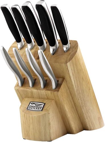 Professional high-carbon stainless steel blades with black polymer handles. High-carbon stainless steel creates a stronger, harder blade resisting stains, rust and pitting Full metal tang extends from the tip of the blade to the end of the knife forming part of the handle; provides added strength, balance, and control Triple compression stainless steel rivets secure the handles to the blade for in